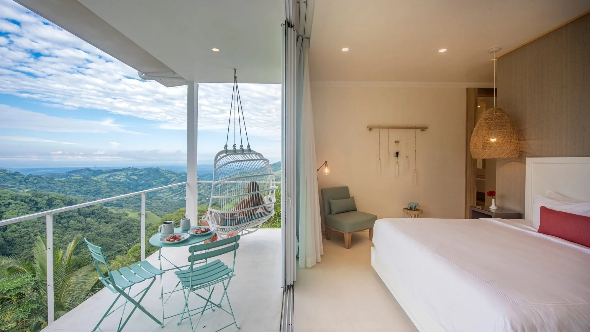 The Premium Room has expansive views to the mountains that can be seen from the luxurious King-Sized Beds or on the spacious balcony and sitting area adorned with hanging chair swings. Coco is our King suite situated near the yoga studio with a large, covered balcony for enjoying the vast views of the mountain, valley, and ocean.